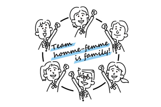 私たちの存在意義です。お客様との会話を楽しんで、オム・ファムのファンになる瞬間を作る!」